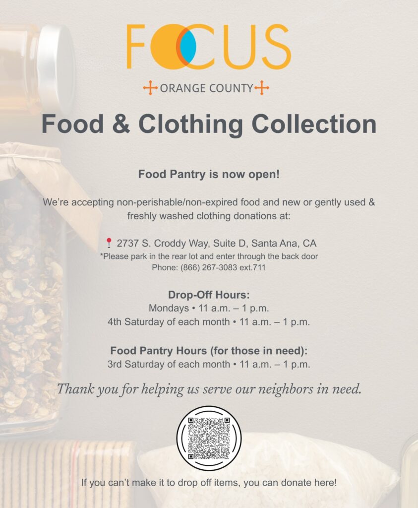 FOCUS Orange County is tremendously proud and honored to collaborate with churches, other local nonprofits and companies to ensure that donated and wholesale supplies are effectively distributed to those most in need using our extensive network of faith groups, schools, community-based organizations and individual volunteers.